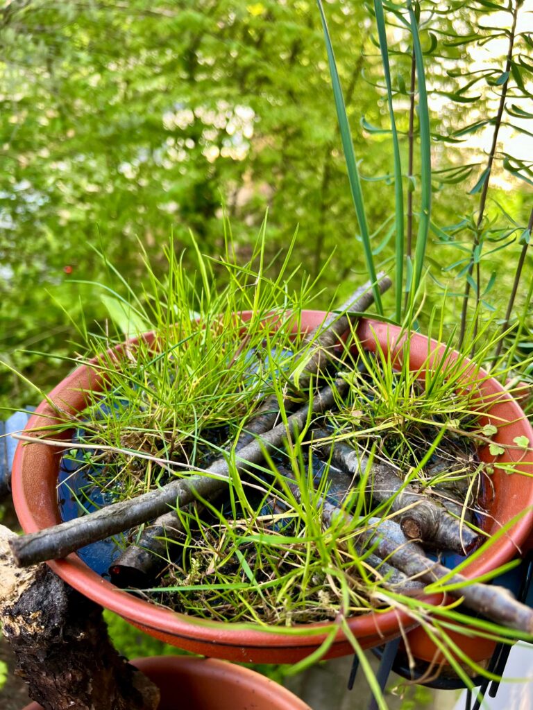 - Insektentränke: Flacher Teller, Steine, Stöcke und Moos rein, Wasser drauf – fertig. Im Schatten bleibt’s schön kühl & verdunstet nicht so schnell.