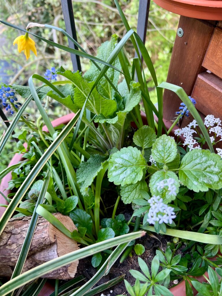 Leckere Balkonkräuter für den Nordbalkon: Minze, Schnittlauch, Petersilie.